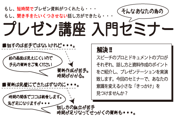 | 講 師 | 人を動かす話し方スピーチトレーナー 上畠榮一 DTPエキスパート 松永夏子 |
